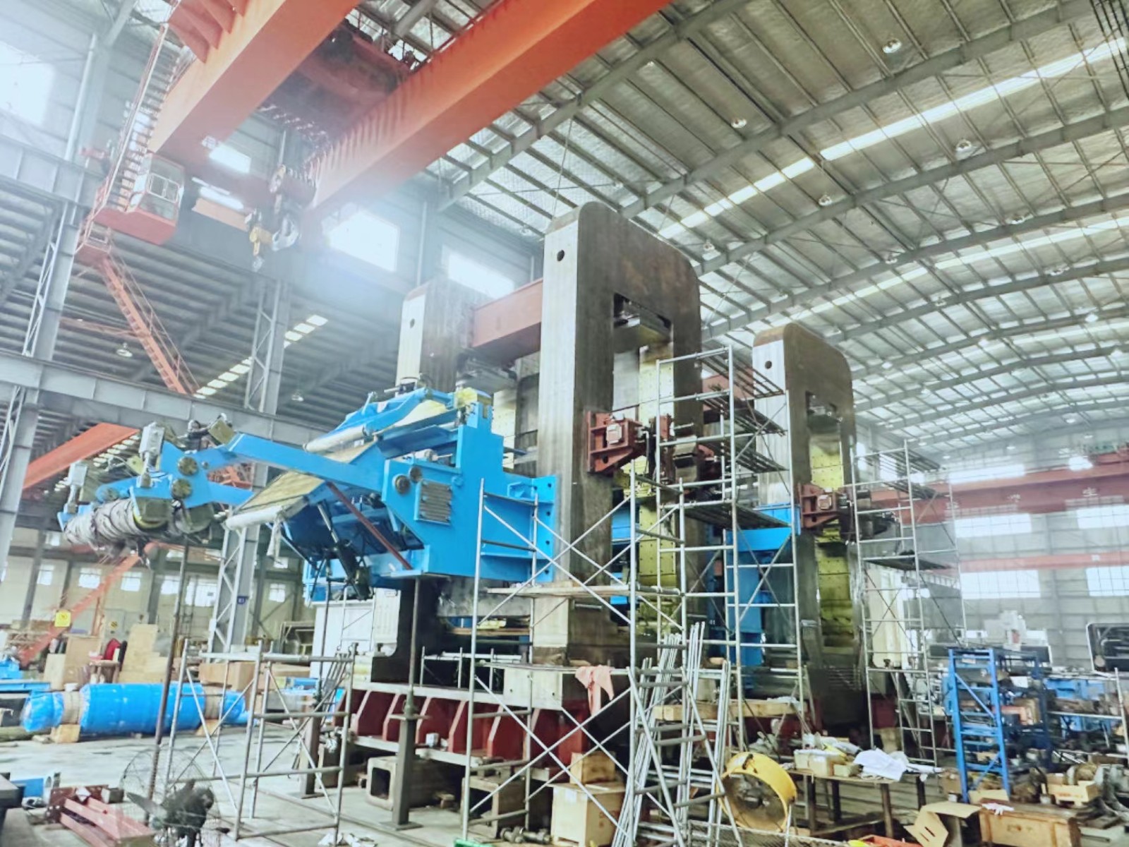 內(nèi)蒙古聯(lián)晟新能源材料有限公司2300mm鋁板兩機(jī)架冷精軋機(jī)訂單的裝配測(cè)試現(xiàn)場(chǎng)