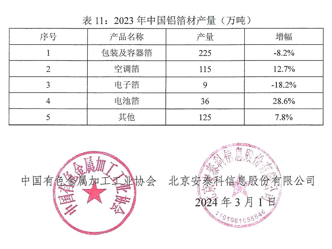 2023年銅鋁加工材產(chǎn)量的通報文件?。?!